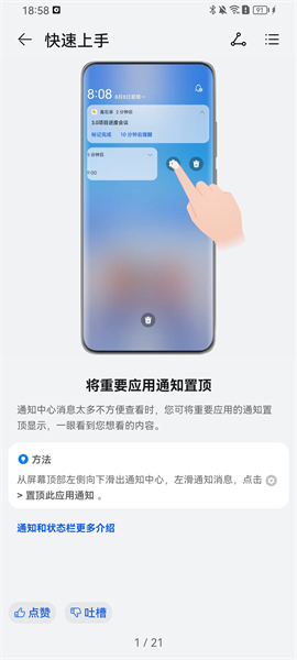 4、點擊快速上手,會一步一步詳細(xì)的講解手機各種消息通知顯示設(shè)置,一鍵就能看見想看的信息;