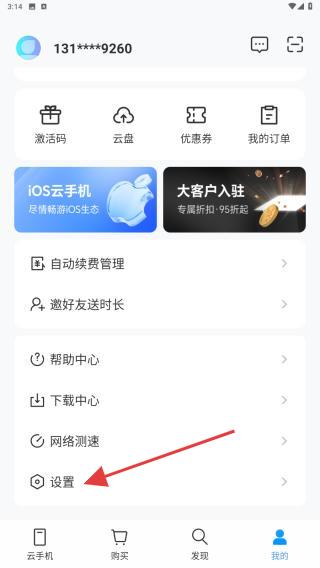 1、打開小滴云手機APP,在個人主要內向下滑動找到并點擊設置的按鈕。
