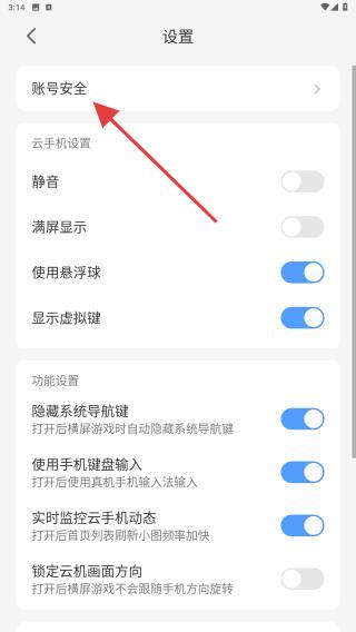 2、進入設置的頁面內,點擊賬號安全的功能按鈕。