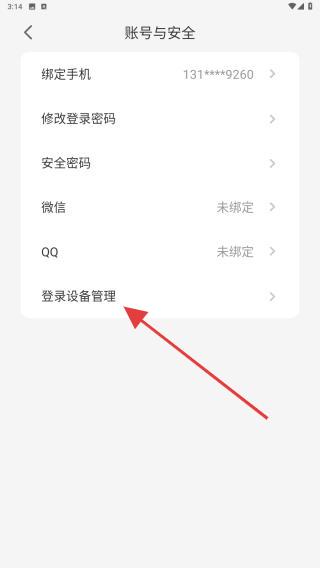 3、進入賬號與安全的頁面內,找到并點擊登錄設備管理的按鈕。