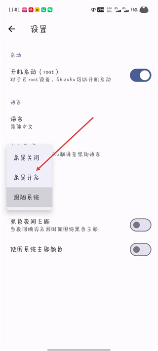 3、在主題設(shè)置列表中,點(diǎn)擊總是開啟選項(xiàng)。