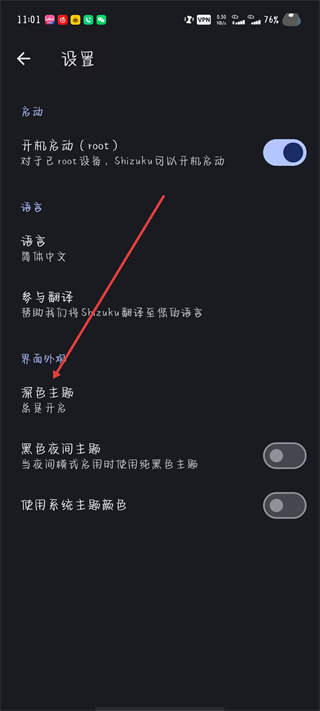 2、在設(shè)置頁面,點(diǎn)擊深色主題,彈出主題設(shè)置列表。