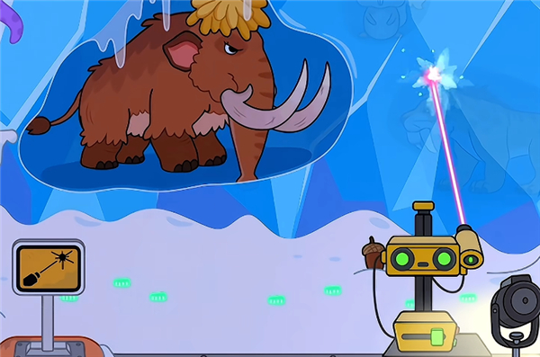 4、例如這里小編拖動激光將冰塊融化,將可以看見長毛象以及小企鵝哦;