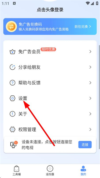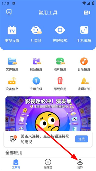 1、打開投屏軟件,點擊右下角我的,進入個人頁面。