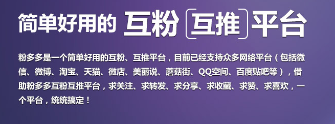 粉多多手機(jī)版是一款2015年真正的免費(fèi)使用的互粉神器,是從事營銷工作必備的造粉應(yīng)用,幫助你輕松增加粉絲數(shù)量。手機(jī)上掌控隨時(shí)隨地求關(guān)注、互粉不離身,粉多多安卓版支持微信互粉,微淘互粉,微博互粉,美麗說,蘑菇街,qq空間,百度貼吧等。歡迎下載使用。