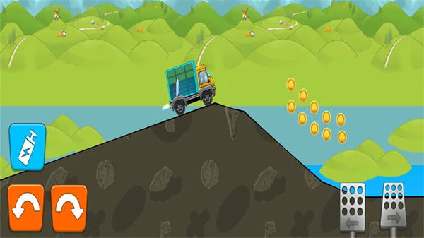 2、靈活運用自己的駕駛技巧,并在攀登山坡的過程中,收集金幣獎勵;