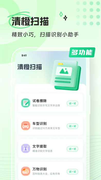 清橙掃描app是一款高效且便捷的掃描工具,適合在多種環(huán)境下快速掃描文檔以及文件,還能保存一下高清的拍攝圖片,對于用戶來說都是非常便利,同時其中還擁有試卷擦除和車輛識別等功能,在學習和日常生活當中都有非常好用的效果,不僅如此,所有的文件數(shù)據(jù)都不會出現(xiàn)丟失的情況,直接備份在賬號云端,解決了數(shù)據(jù)出現(xiàn)丟失的情況,整個掃描過程無需大家付費使用,完全能夠滿足日常工作和生活的需求。