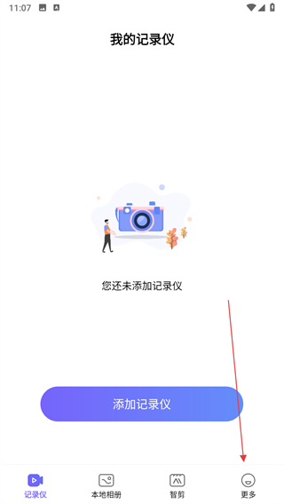 1、打開錄風者應(yīng)用的記錄儀頁面,點擊導(dǎo)航欄最右側(cè)的更多選項,進入更多功能頁面。