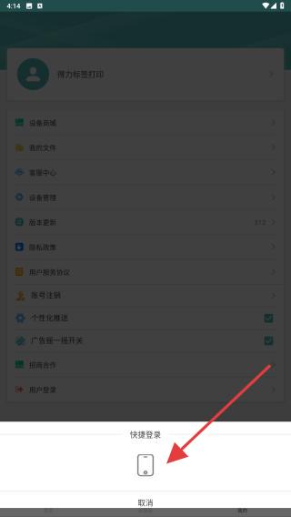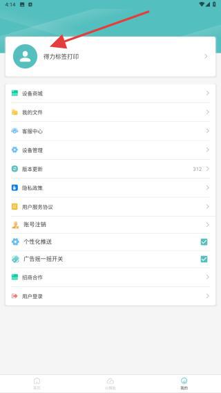 2、進(jìn)入到我的個(gè)人頁面內(nèi),點(diǎn)擊得力標(biāo)簽打印的區(qū)域。