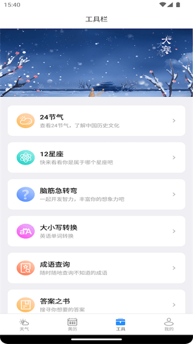 秋葉天氣app是一款能夠為你提供精準的天氣信息和預報的生活服務軟件,它的出現(xiàn)能夠使你更好的知道未來的天氣狀況,從而做出更好的生活決策,同時還能提供詳細的天氣指數(shù)和建議,幫助我們更合理的安排活動和出行,快來下載試試看吧。