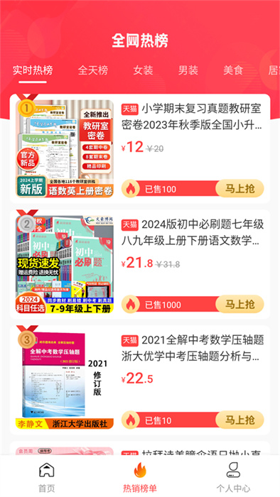 a、熱榜商品,按照用戶日常點(diǎn)擊的情況進(jìn)行排名,可在這里搜索優(yōu)惠商品;