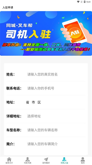 同城叉車幫app是一款十分好用的生活服務(wù)類軟件,是一個(gè)專門為了用戶進(jìn)行尋找叉車的軟件,為用戶提供了許許多多豐富的叉車內(nèi)容,讓用戶可以隨時(shí)滿足自己的叉車需求,解決叉車的尋找煩惱,一鍵發(fā)布自己的需求,在線去進(jìn)行接單,為用戶們帶來(lái)了更加便捷的接單以及找叉車的服務(wù)。