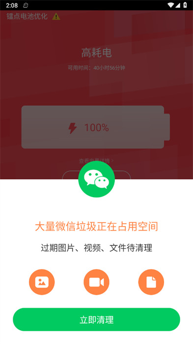 2、在軟件里面可以找到垃圾清理和微信專清等各種功能,一鍵優(yōu)化很輕松;