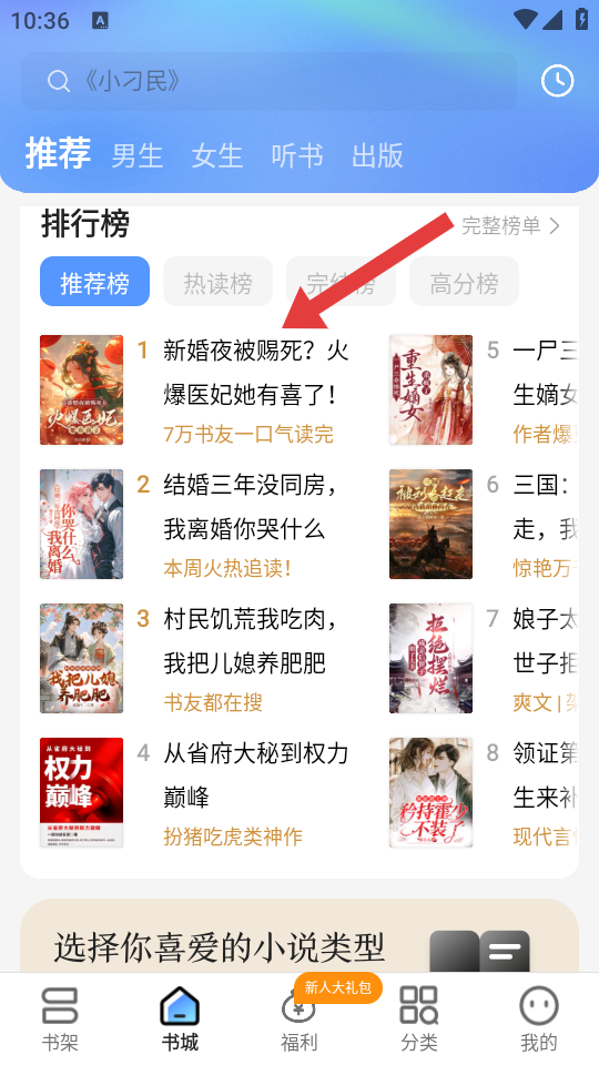 1、在浩看書(shū)城的推薦榜等榜單中,點(diǎn)擊要聽(tīng)的小說(shuō),進(jìn)入小說(shuō)閱讀頁(yè)面。
