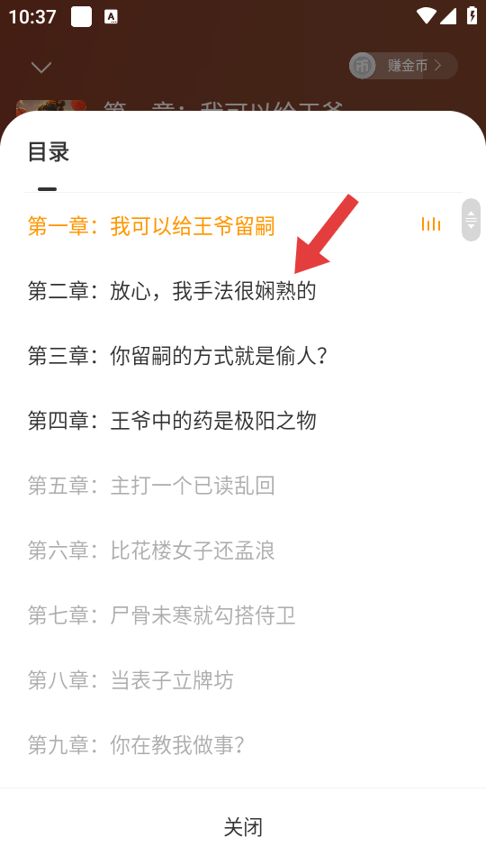 4、在章節(jié)列表中,可以點(diǎn)擊要收聽(tīng)的章節(jié),即可開(kāi)始收聽(tīng)該章節(jié)的內(nèi)容。