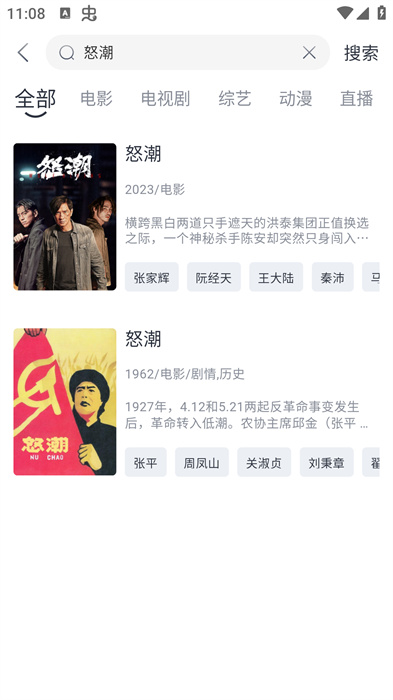 3、搜索作品,直接在搜索框中輸入想要看的影視作品的名字,然后點擊搜索就可以直接找到;