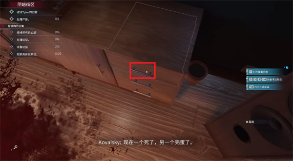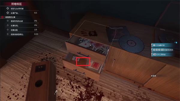 4、打開后可以看見抽屜內的物品,可以將對自己有用的物體拾取到自己的背包之中,以便后期進行使用;
