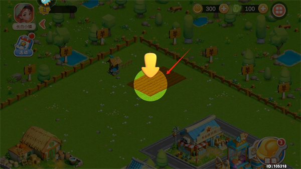 4、在屏幕亮起的指引之下點(diǎn)擊,在這個(gè)空白的地方開墾出一片農(nóng)作物田地,在這里種植上自己的農(nóng)作物;