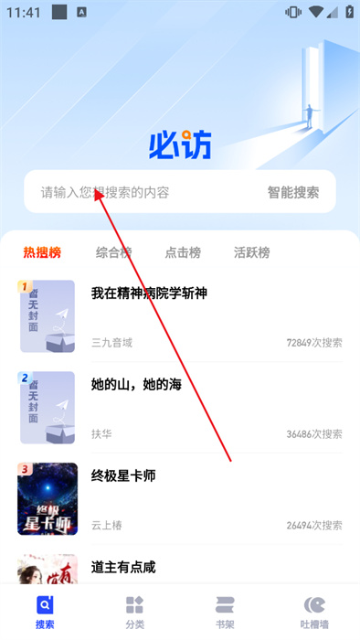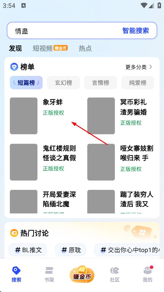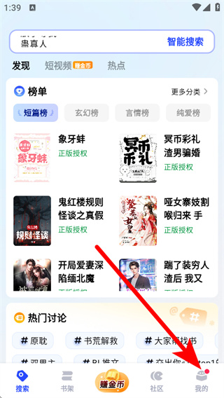 2、進(jìn)入APP主界面,在榜單區(qū)域找到想要閱讀的小說,點擊小說封面或標(biāo)題。
