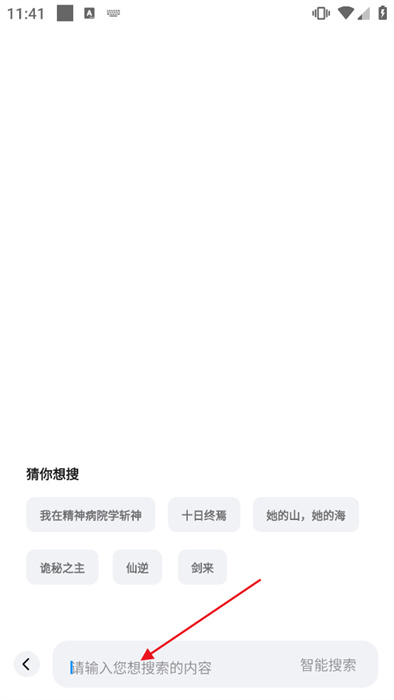 1、將已經(jīng)下載完成的軟件打開并進(jìn)入首頁,點擊首頁中間的搜索框會跳轉(zhuǎn)頁面;