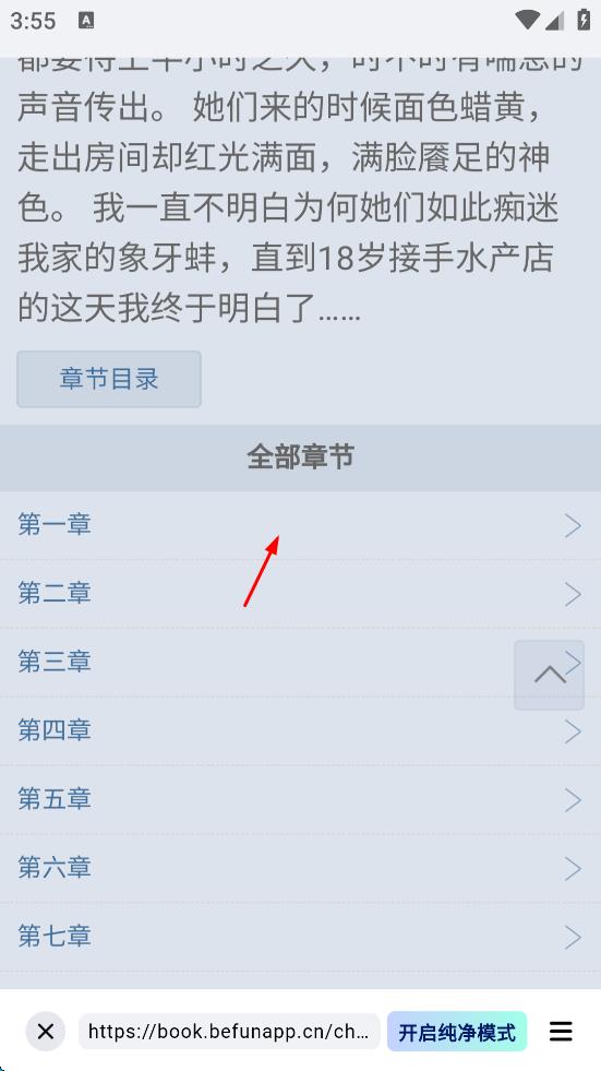 4、在全部章節(jié)列表中,選擇要閱讀的章節(jié),點擊該章節(jié),即可開始閱讀小說內(nèi)容。
