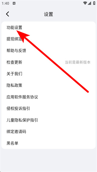 3、在設(shè)置界面,點擊功能設(shè)置選項,進(jìn)入功能設(shè)置頁面。
