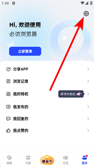 1、在必訪瀏覽器首頁,點擊右下角我的選項,進(jìn)入個人中心頁面。