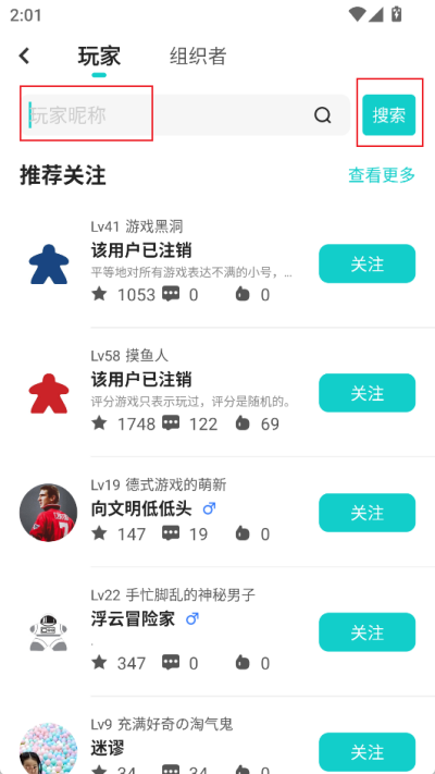 4、點擊后進入玩家搜索功能界面,在這里輸入玩家的昵稱點擊后方的【搜索】選項即可;