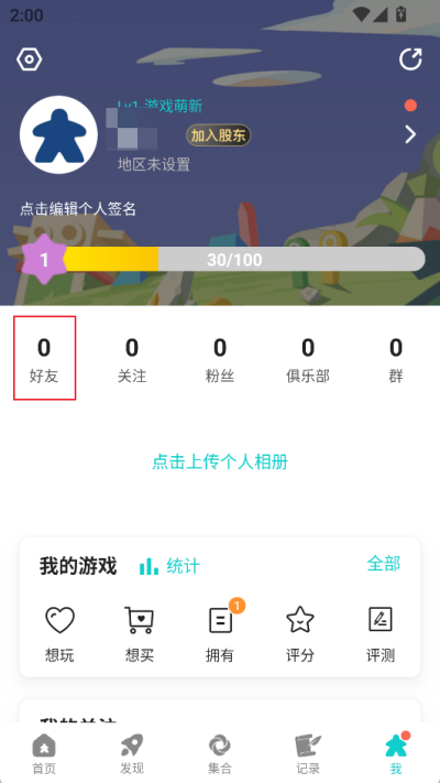 2、點擊后進入個人信息界面,在這里可以查看自己的信息內(nèi)容,點擊上方的【好友】功能;