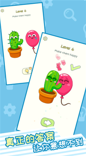 1、多樣化的難題:包含60個輕松又搞笑的關(guān)卡,在各種情況下尋找答案,挑戰(zhàn)自己的智力。