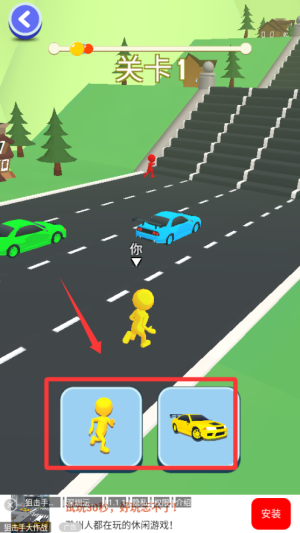 2、掌握道具使用技巧。遇到障礙時(shí),點(diǎn)擊屏幕下方的道具圖標(biāo),如汽車等。