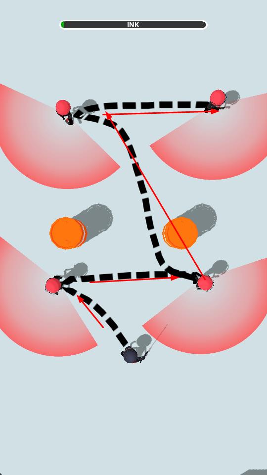 1、路徑規(guī)劃與操作:玩家用手指滑動屏幕,畫出最佳行動路徑,同時需注意界面上方的顏料限度,合理規(guī)劃路徑以完成刺殺任務。