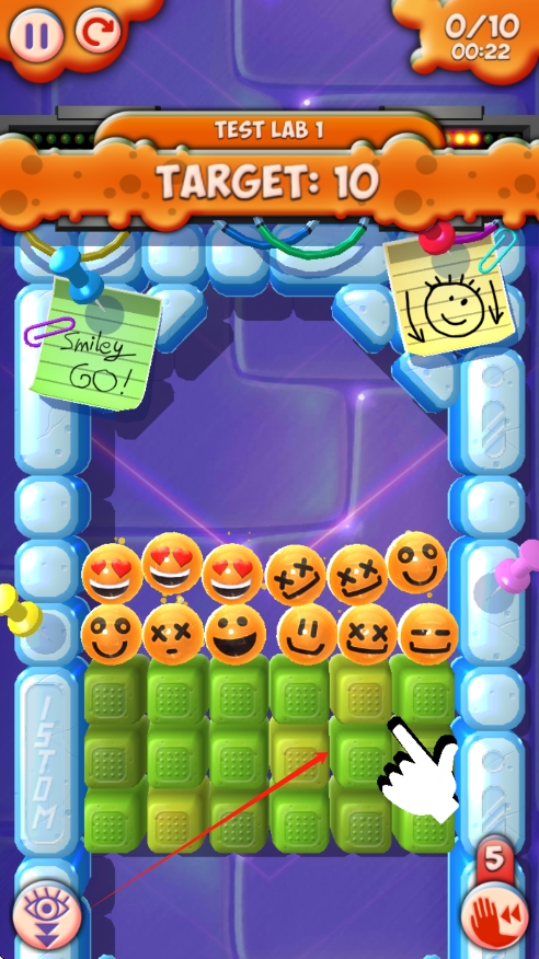 1、根據(jù)游戲提示,我們滑動屏幕就可以消除綠色小方塊,就可以讓小表情落下來。