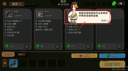 1、選擇心儀的大鵝英雄,搭配個(gè)性化武器組合出戰(zhàn)。