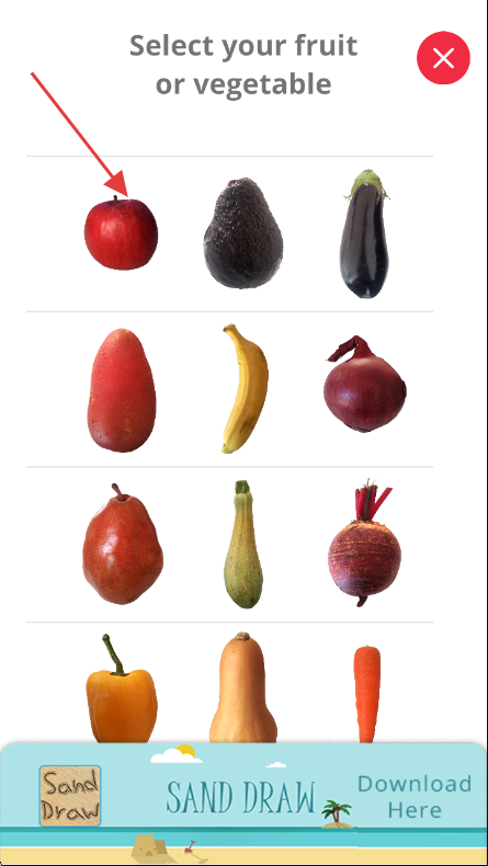2、在【Select your fruit or vegetable】界面中選擇蘋果圖標。