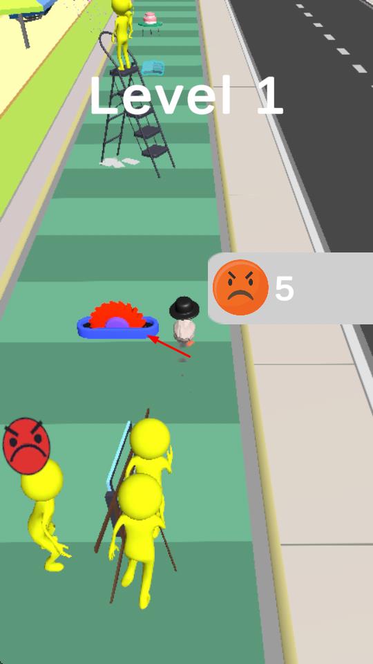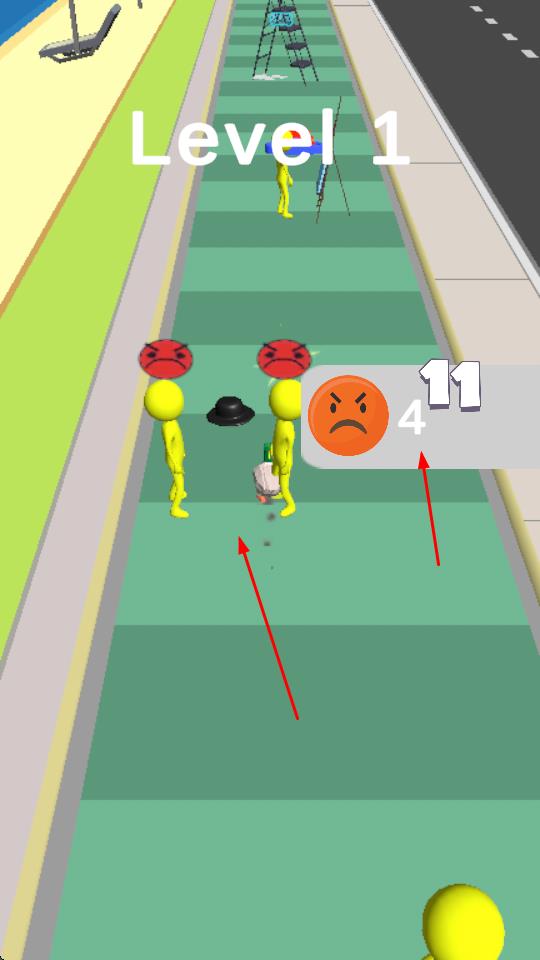 1、玩家操控白色鴨子在綠色步道上移動(dòng),通過左右移動(dòng)撞向黃色小人等障礙。