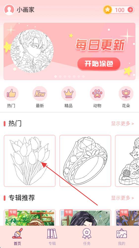 1、進(jìn)入趣涂色游戲,在豐富模板庫(kù)中挑選喜歡的圖案,點(diǎn)擊開(kāi)啟創(chuàng)作,準(zhǔn)備踏上色彩填充之旅。