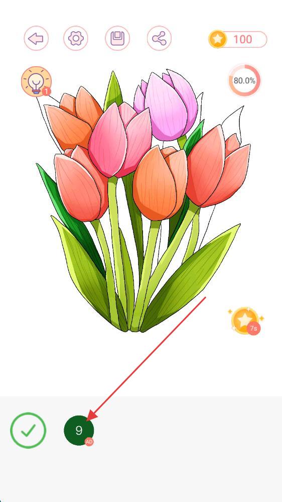 3、完成整張圖案的涂色,確認(rèn)效果滿意后,點(diǎn)擊保存按鈕,即可將作品收入囊中,還能分享展示成果。