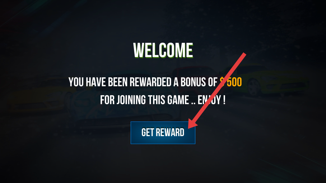 1、進(jìn)入游戲出現(xiàn)歡迎界面,點(diǎn)擊【GETREWARD】領(lǐng)取500美元獎勵,獲取初始游戲資源。