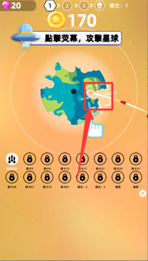 2、優(yōu)先攻擊行星的脆弱部位,如裂縫或顏色不同的區(qū)域,這些地方更容易造成連鎖破壞,獲得更高分數(shù)。