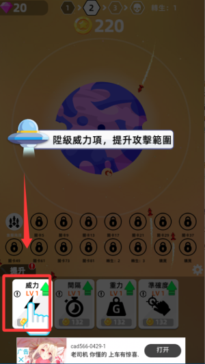 3、積攢金幣升級武器威力,后期面對大型行星時,需要預判碎片飛行軌跡,連續(xù)攻擊才能完全摧毀。