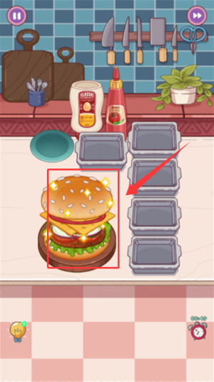 4、特殊關(guān)卡如漢堡制作,需要按照特定順序完成操作。仔細(xì)閱讀任務(wù)提示,確保每個(gè)步驟準(zhǔn)確無誤。完成后將作品交給客戶驗(yàn)收,獲得滿意度評(píng)價(jià)和游戲獎(jiǎng)勵(lì)。