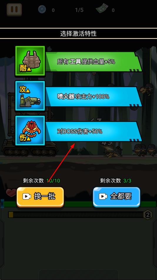 2、游戲中途遭遇不同類型敵人,需觀察其攻擊方式與弱點,快速調(diào)整已部署的士兵和戰(zhàn)車陣容,更換武器裝備應(yīng)對挑戰(zhàn)。