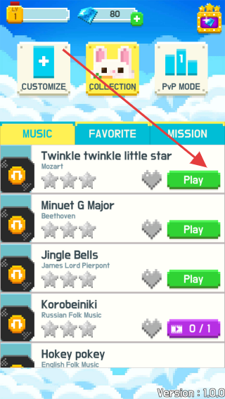 2、在音樂選擇界面,選擇喜歡的曲目(如【Twinkle twinkle little star】),點(diǎn)擊【Play】播放,為游戲增添氛圍,也可切換其他音樂。