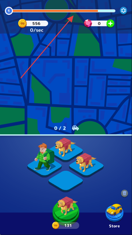 2、進(jìn)入游戲后,留意上方進(jìn)度條,推進(jìn)游戲進(jìn)程并查看金幣等信息。