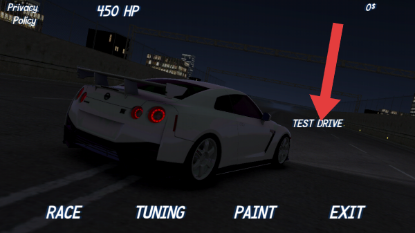 1、進(jìn)入紅線賽車(chē)GTS游戲界面后,點(diǎn)擊【TESTDRIVE】按鈕開(kāi)始試駕,熟悉車(chē)輛基本操控。