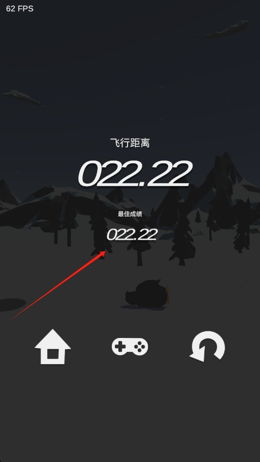 3、游戲結(jié)束后,查看飛行距離和最佳成績,可選擇重新挑戰(zhàn)或返回主界面。