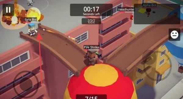 1、在對(duì)戰(zhàn)場(chǎng)景中,注意剩余時(shí)間,操控角色利用地形和道具,擊敗對(duì)手【Beta】,完成目標(biāo)。