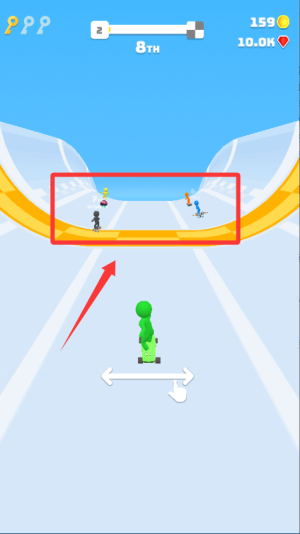 3、熟悉不同賽道特點(diǎn),每個(gè)場(chǎng)地都有獨(dú)特的障礙布局。多人模式中可觀察對(duì)手路線,學(xué)習(xí)更高效的通過方式,逐步提升排名。