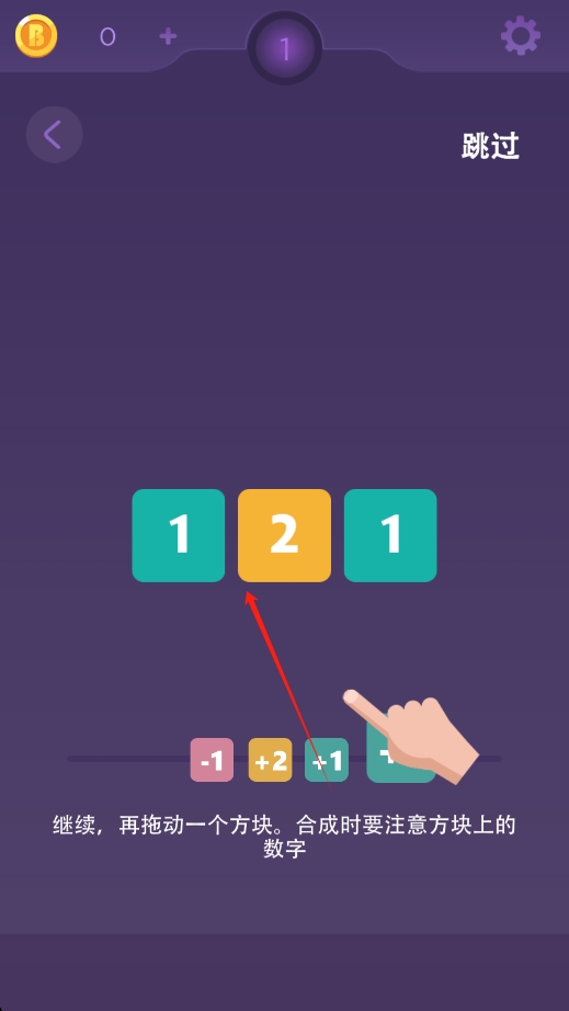 2、拖動方塊進行合成,注意方塊上的數(shù)字,使相同數(shù)字方塊相鄰。